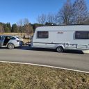 4m wide exit with enough space in front of the exit to drive a caravan or longer caravan from the adjacent tarmac road.