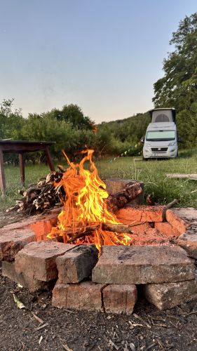 Tento bezkemp možná není nejmalebnejší, ale vyhrává na plné čáře doprovodnými zážitky. Je umístěný v blízkosti vesnice, ale oba večery, které jsme tam strávili, byly velmi klidné a tiché. S panem majitelem jsme si příjemně popovídali, vyměnili cestovatelské zážitky, ochutnali víno z domácího sklípku a nakonec se i svezli na vláčku. Po náročném cyklovyletu jsme se vykoupali v nedaleké řece, která byla čistá a osvěžující. Určitě doporučujeme!